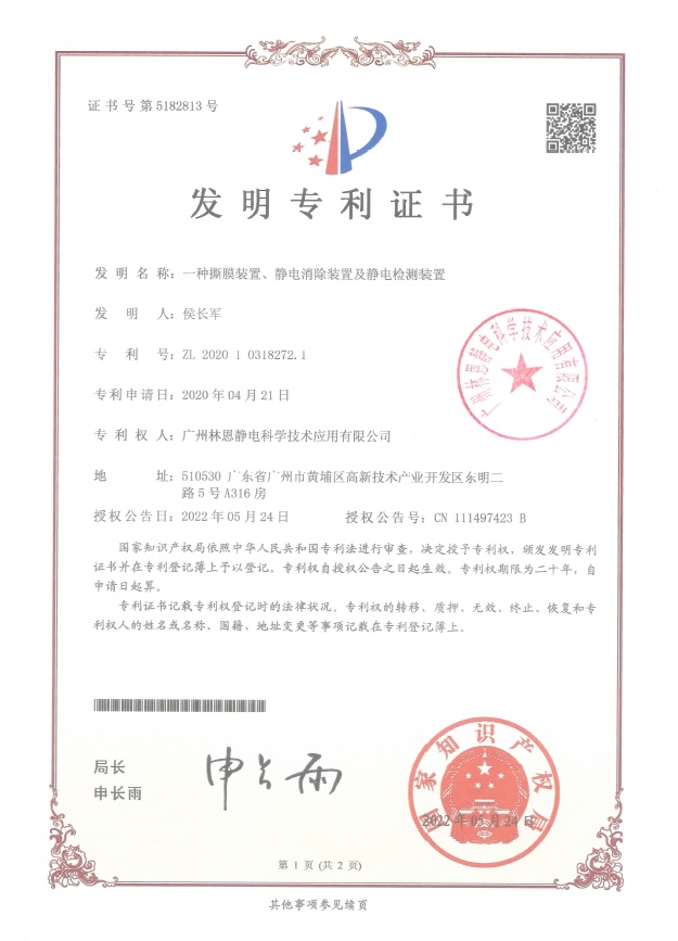 In 2020, to cope with the severe electrostatic charging and residuals of film peeling processes induced production yield loss of LCM (Liquid Crystal Display Module) and Touch Panel Module manufacturing industry, LEAN ESD worked out the innovative technical approach to effectively mitigate the electrostatics generated by peeling process. And filed IP application to CNIPA (China National Intellectual Property Administration). Meanwhile, the technical solution per this IP have been transformed to engineering practice in LCM manufacturer.
